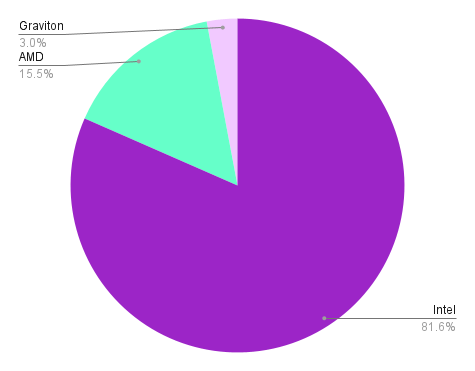 There are about three times as many families with Intel processors than with AMD or Graviton.
