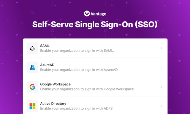 Any Vantage user can now configure SAML based SSO for their account without contacting Vantage support.