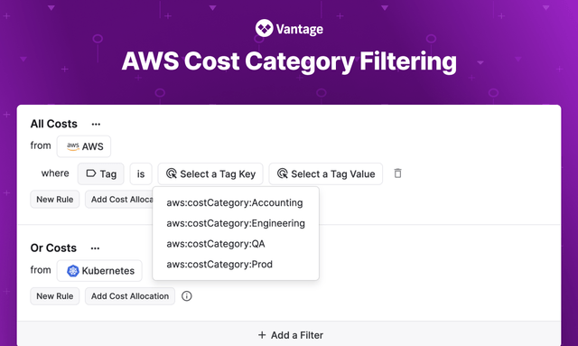 Users of AWS Cost Categories can now filter by them in Cost Reports