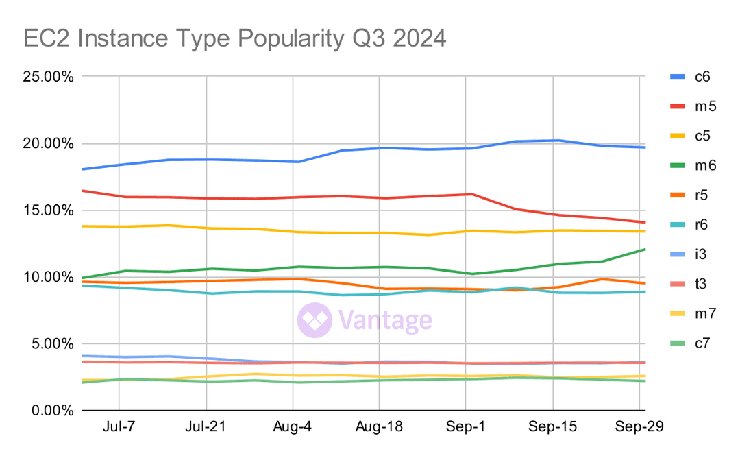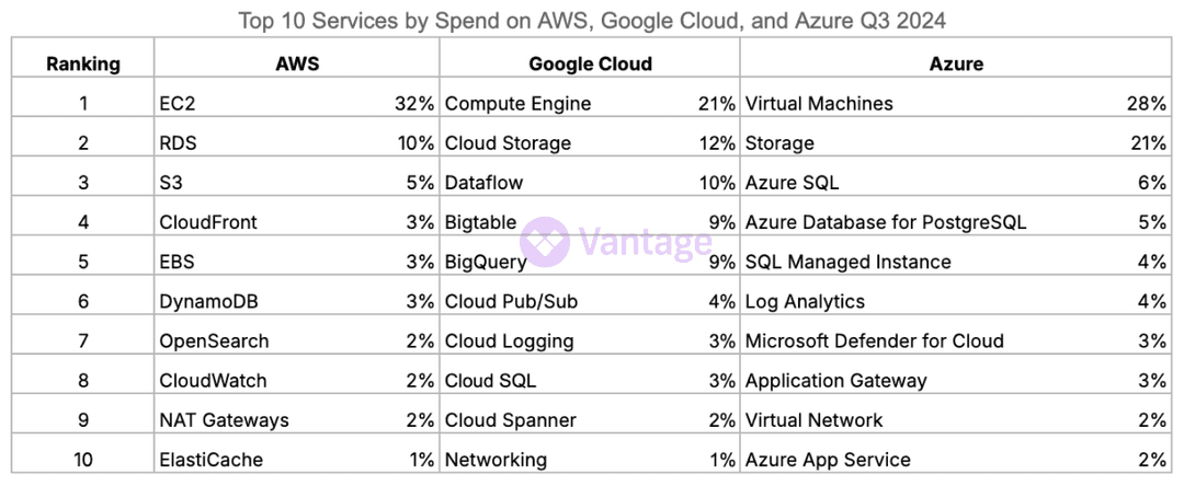 Fresh off the quarterly earnings for Microsoft, Google, and Amazon, we are releasing the Q3 2024 Cloud Cost Report, an analysis of cloud usage based on anonymized Vantage customer usage. Vantage is a cloud cost visibility and optimization platform, with a unique view into industry trends, thanks to tens of thousands of connected infrastructure accounts across 16 cloud providers. To discuss this report in more detail, join our growing Slack Community of over 1,000 engineering leaders, FinOps professionals, and CFOs. View past reports here.