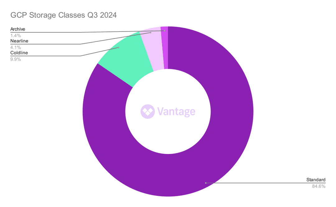 Last quarter, we looked at Amazon S3 storage classes and found that approximately 55% of costs were attributed to the Standard class. In comparison, Google Cloud's storage classes appear even less optimized, with around 85% of costs tied to the Standard storage class (including retrieval fees).