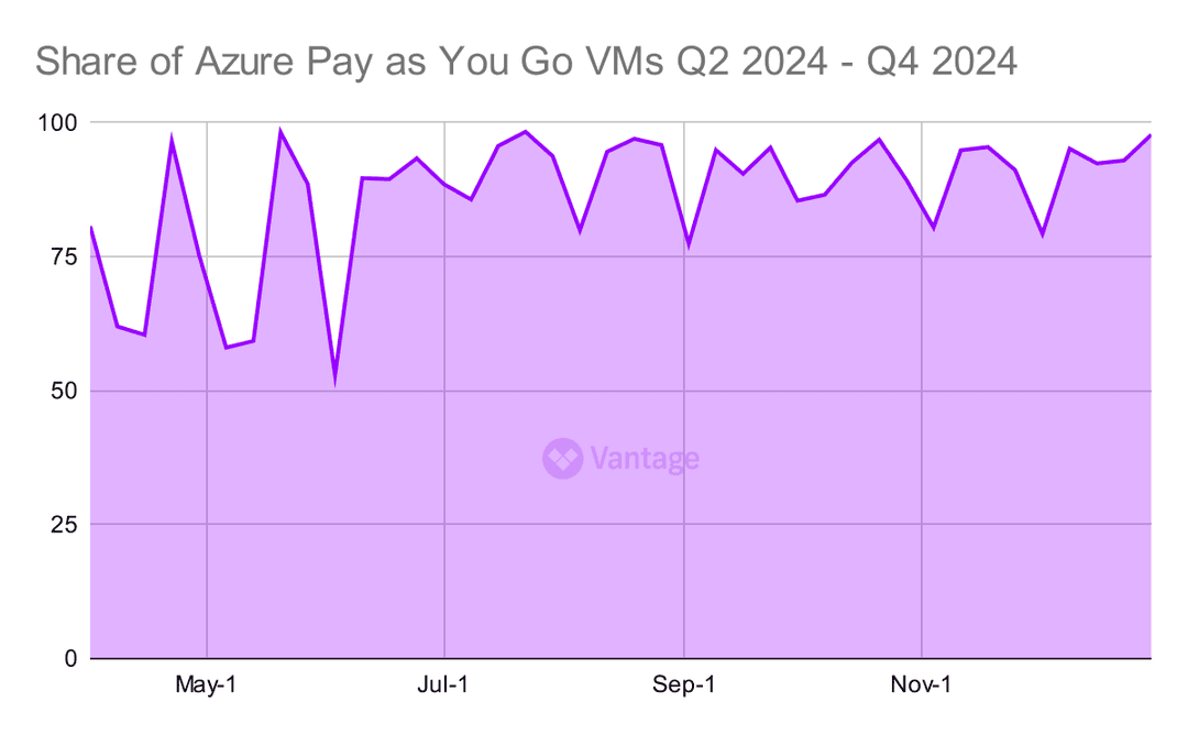 Azure pay as you go VMs are at the opposite end of the spectrum from EC2 On-Demand. Most Azure users opt for pay as you go plans instead of committing to Reserved VM Instances or savings plans for compute.
