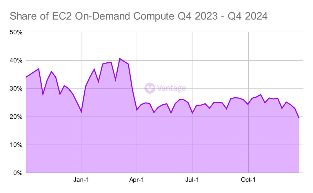 Fresh off the quarterly earnings for Microsoft, Google, and Amazon, we are releasing the Q4 2024 Cloud Cost Report, an analysis of cloud usage based on anonymized Vantage customer usage. Vantage is a cloud cost visibility and optimization platform, with a unique view into industry trends, thanks to tens of thousands of connected infrastructure accounts across 19 cloud providers. To discuss this report in more detail, join our growing Slack Community of over 1,000 engineering leaders, FinOps professionals, and CFOs. View past reports here.