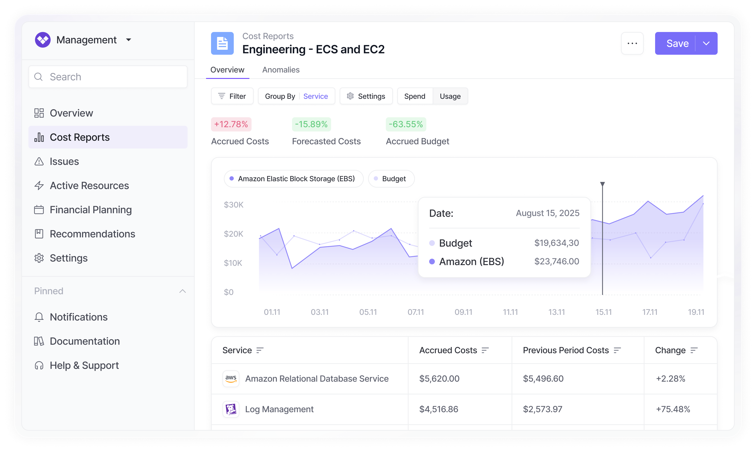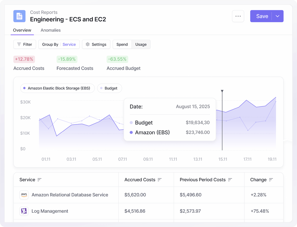 Set targets to hold teams accountable before cost overruns occur. Get automated alerts that keep teams on target.