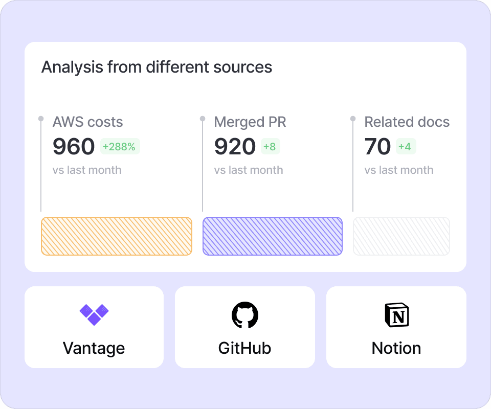 Combine the data available via the Vantage MCP with other MCP Servers like Notion and Github to easily create reports based upon multiple sources of context.