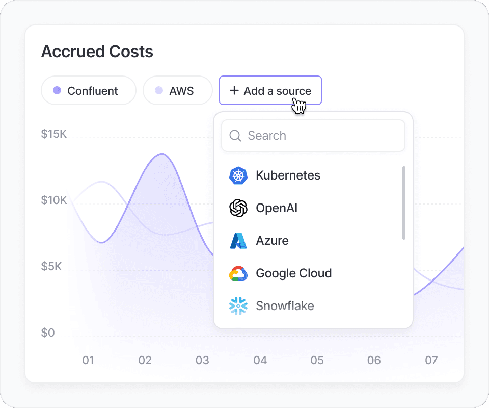 Track Confluent alongside AWS, GCP, Azure, and 20+ other services for a complete view of your infrastructure spend.