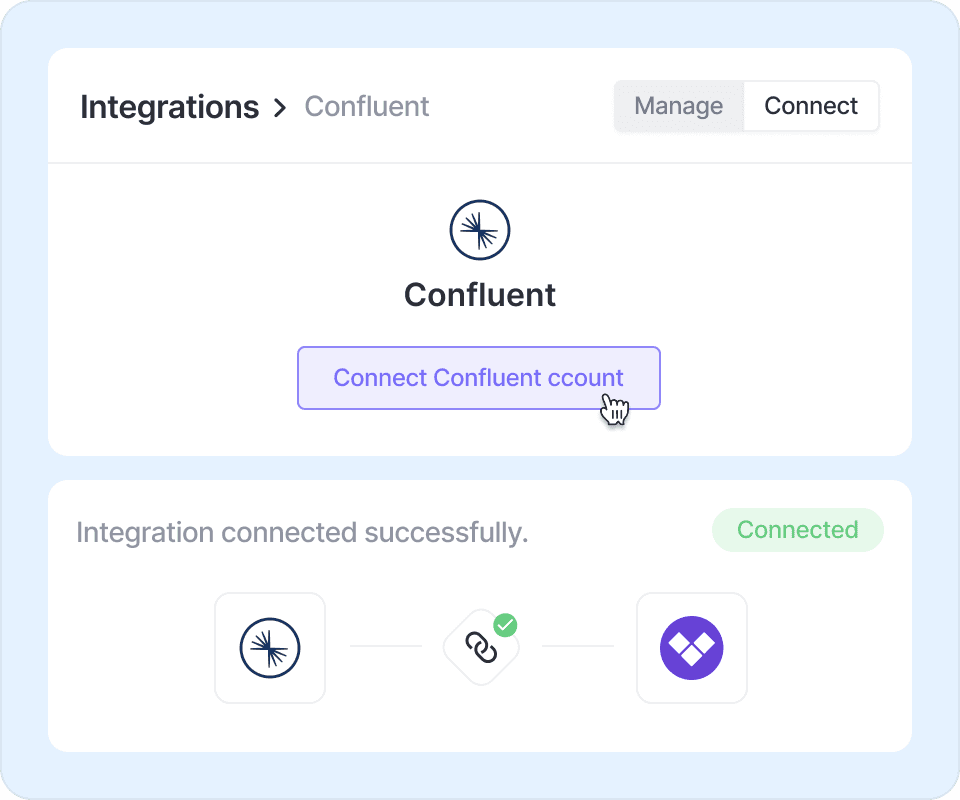 Vantage integrates with Confluent using your API key and secret to access the Billing and Organizations APIs. Vantage never performs write operations. Once connected, your clusters are synced automatically for cost analysis.