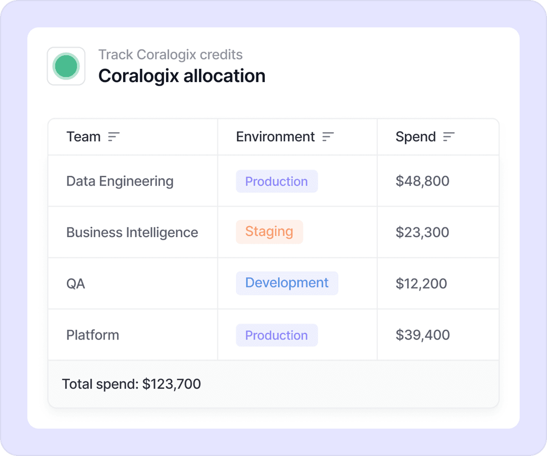 Aggregate Coralogix spend with AWS, Azure, GCP, and other services to track your full cost story.