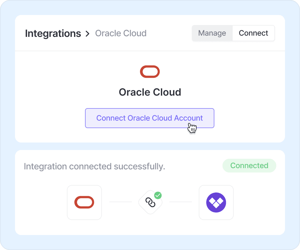 Vantage uses a read-only IAM user and API key to access your Cost and Usage Reports stored in an OCI Object Storage bucket. Setup takes just a few minutes, then once connected, your data is ready for reporting and analysis.