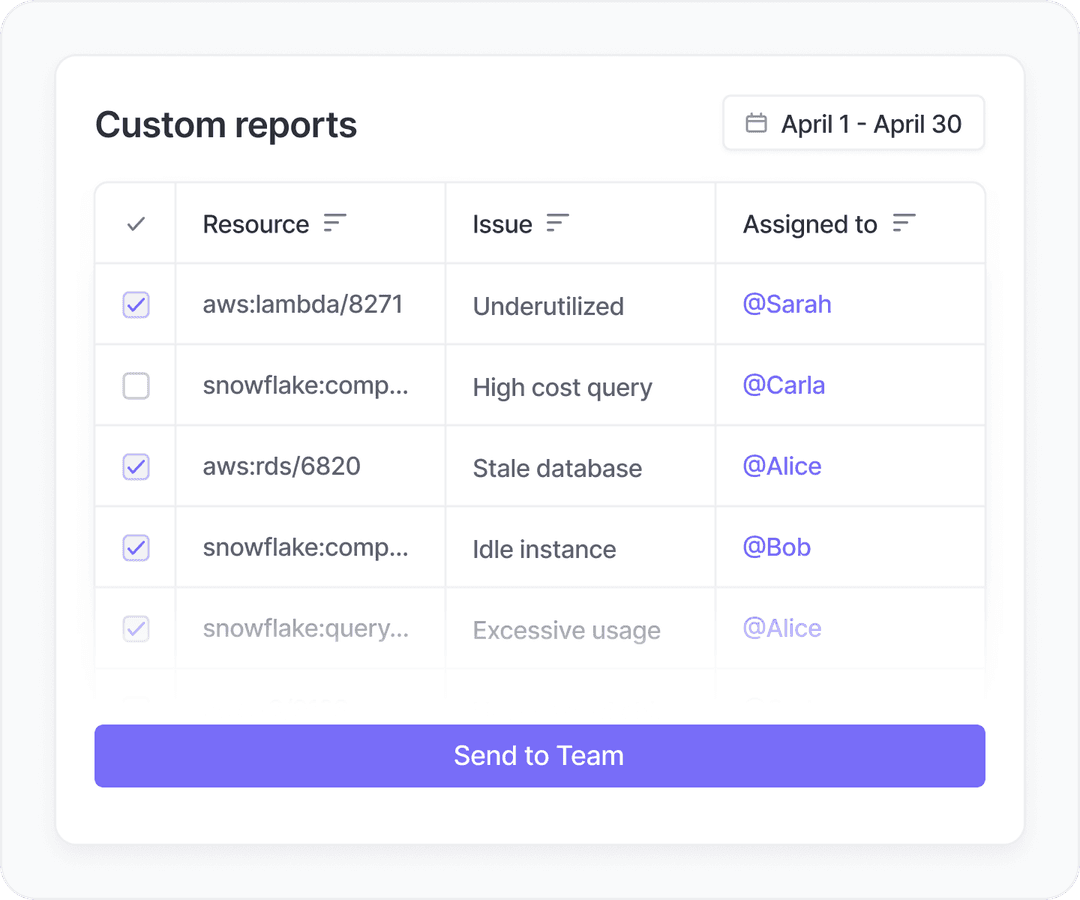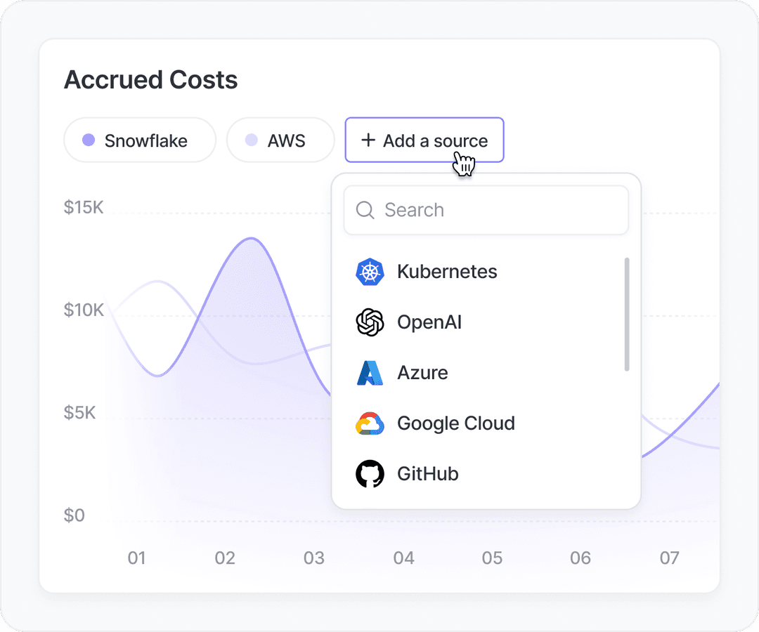 Monitor Snowflake together with AWS, Azure, GCP, and more in one platform built for total cost visibility.